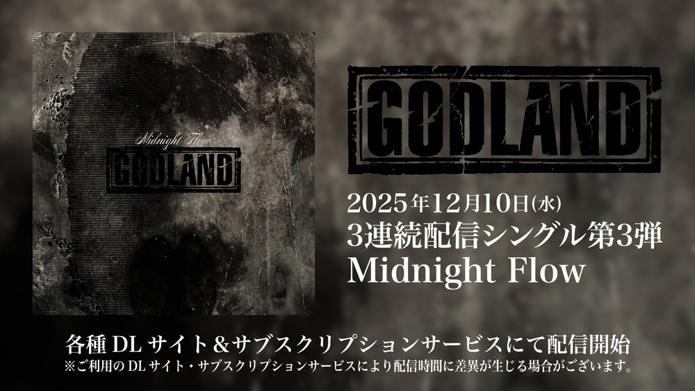 2025年12月10日(水)GODLAND 3連続シングル第3弾「Midnight Flow」配信決定!